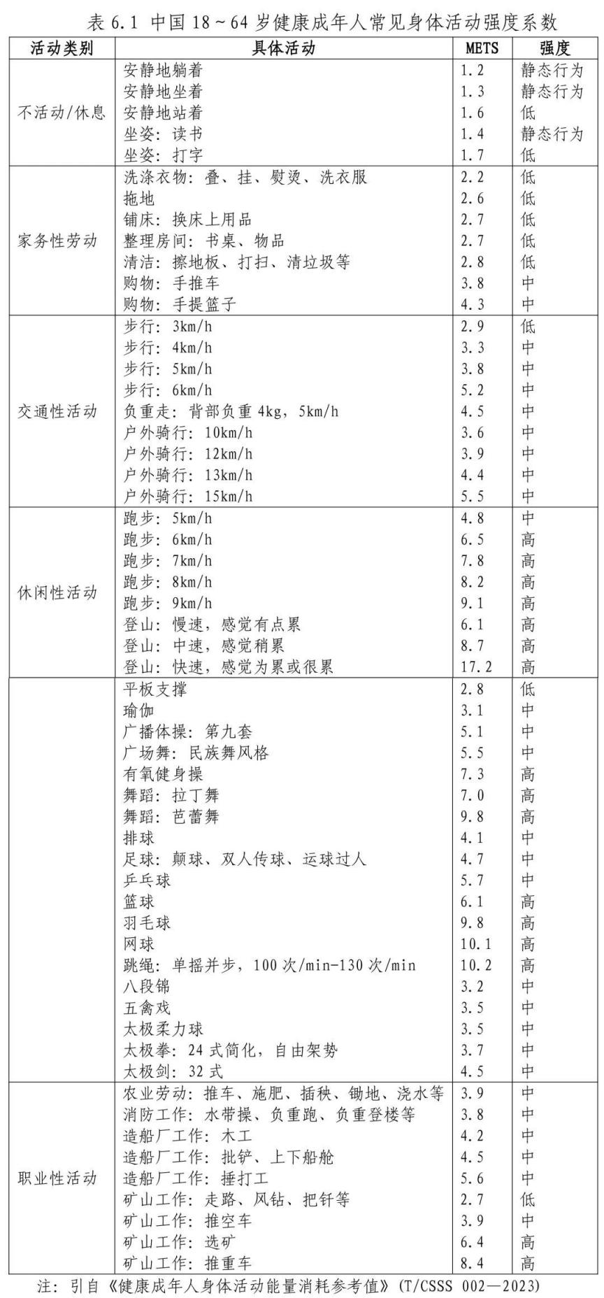 别烦恼,这份《中国18~64岁健康成年人常见身体活动强度系数》表将为您答疑解惑,赶紧收藏对照吧!